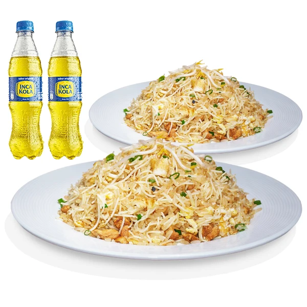 Ingredientes: Arroz, Pollo, huevo, cebolla china picada, jengibre, frijol chino, tallarín chino, ajo, salsa de soja, aceite y sal.